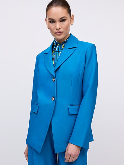 NEW PREMIUM STRETCH! With a luxurious look and feel, our newest Premium Stretch is designed for a comfy fit that sculpts and flatters. So easy to wear and it’s washable! A sartorial style for any closet, this blazer is designed with a tailored fit and a two-button closure. Wear it with a matching pant for a suited look.